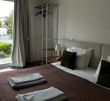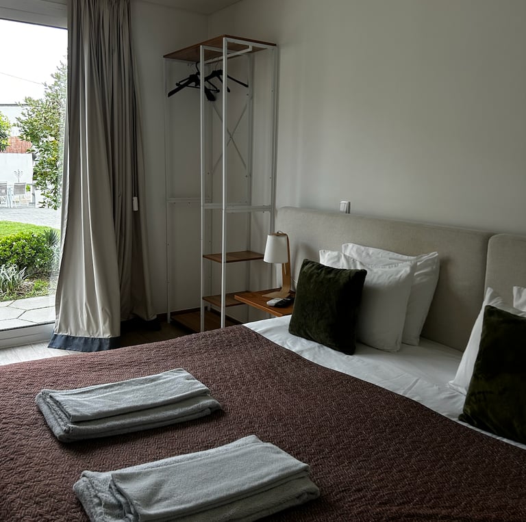Suíte com vista piscina.